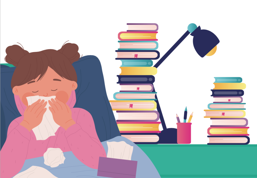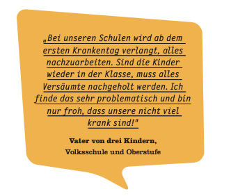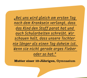 Selbst im Krankenbett heißt es für viele Schülerinnen oft büffeln und pauken. Das kranke Kind daheim soll ja möglichst keinen Unterrichtsstoff verpassen! Kränkelt angesichts dieses Drucks vielleicht nicht nur das Kind?