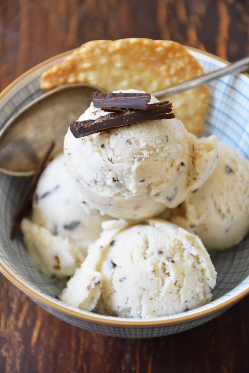 - In die Eismaschine füllen und ca. 30-40 Minuten rühren und gefrieren lassen.