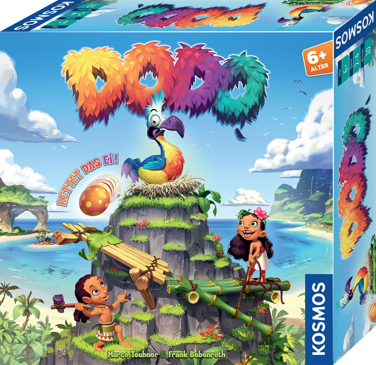 Dodo, der heilige Vogel der Insel, hat ausgerechnet auf dem höchsten Berggipfel sein Ei gelegt. Plötzlich plumpst es aus dem Nest. Die Inselbewohner setzen alles daran, dass das Ei sicher unten ankommt. Ein witziger Spielespaß von KOSMOS für alle ab 6 Jahren.