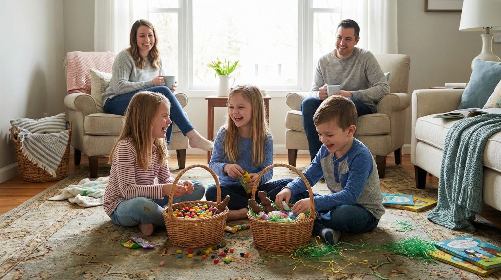 „Warum bringt ein Hase Eier? Normalerweise legen doch Hühner Eier. Und warum sind die Eier bunt? Wie kann ein Hase so viele Eier tragen und wie kann er Geschenke kaufen und transportieren?“ Irgendwann ist es so weit und Kinder stellen genau solche Fragen.