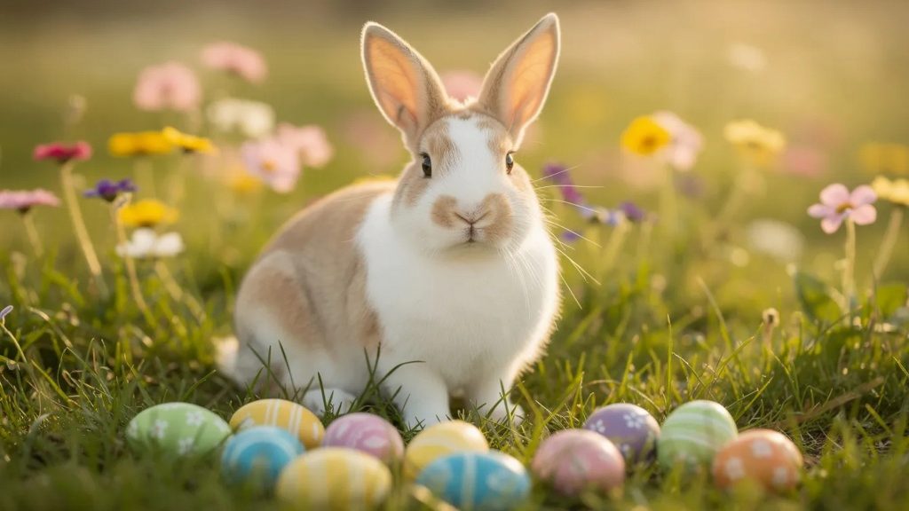 Ich sah auch so etwas wie einen buschigen Schwanz, aber niemand außer den Eltern hat mir geglaubt. Doch das war mir völlig egal – ich hatte den Osterhasen gesehen! Ich weiß auch noch, dass ich unbedingt wissen wollte, ob er eine Frau und Kinder hat. Meine arme Mutter musste mir also seine Familienverhältnisse erklären. Ihrer Aussage nach wohnt der Osterhase in Hasenhausen. Das ist ein Ort, den wir Menschen nicht finden können, der aber auf jeden Fall existiert. Er ist sehr glücklich verheiratet und hat drei süße Hasenkinder. Jedes Jahr zu Ostern macht er sich auf die lange Reise rund um die Welt, um den Kindern Geschenke zu bringen.