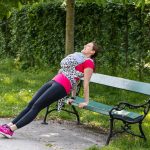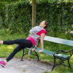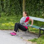 Greifen Sie links und rechts von Ihrem Po den Rand einer Bank, schieben Sie Ihren Po über die Kante der Bank, aktivieren Sie Ihre Bauchspannung und senken Sie den Oberkörper, bis die Ellbogen etwa 90 Grad bilden. Dann drücken Sie sich wieder hoch – der Oberkörper bleibt dabei möglichst senkrecht.