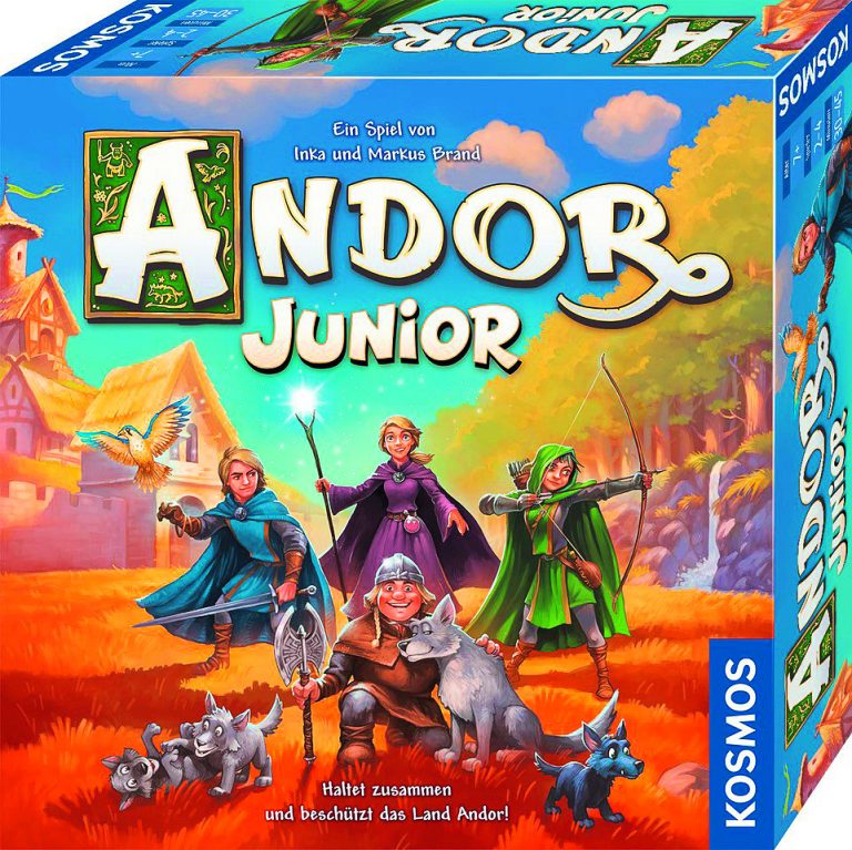 Das preisgekrönte Andor-Abenteuer gibt es nun auch für die ganze Familie. Bei diesem kooperativen Spiel  schlüpft ihr in die Rollen von Krieger, Magierin, Zwerg und Bogenschützin und zieht aus, um die vermissten Wolfswelpen in Sicherheit zu bringen.