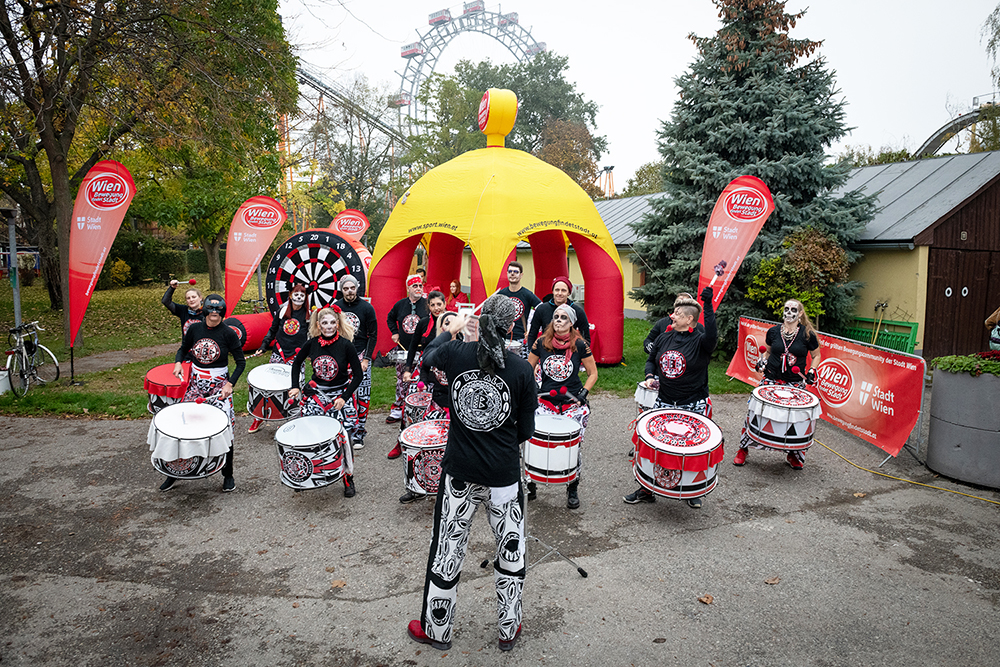 Die Teilnehmenden konnten zwischen dem Freunde- und Familienlauf über eine Distanz von 1,5 km oder dem 6 km langen Hauptlauf wählen und auch auf der Nordic-Walking-Strecke über 6 km waren sportliche Halloween-Fans mit schnellem Schritt unterwegs. Zuvor nutzten die großen und kleinen Gespenster, Skelette und Hexen mit großem Elan die Gelegenheit, sich gemeinsam mit Trainerin Kateryna Perehinets vom Fitnessstudio Injoy aufzuwärmen. Zwischen den verschiedenen Läufen und der Preisverleihung heizte die Trommlergruppe „Batala Boom“ den begeisterten Sportlerinnen und Sportlern ordentlich ein, während „spooky“ Hits den ganzen Abend hinweg Halloween-gerecht für schaurig-gruselige Stimmung sorgten.