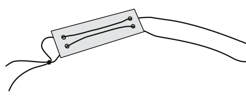 2. Fädele die Schnur wie auf der Abbildung durch die Löcher und verknote die Enden.