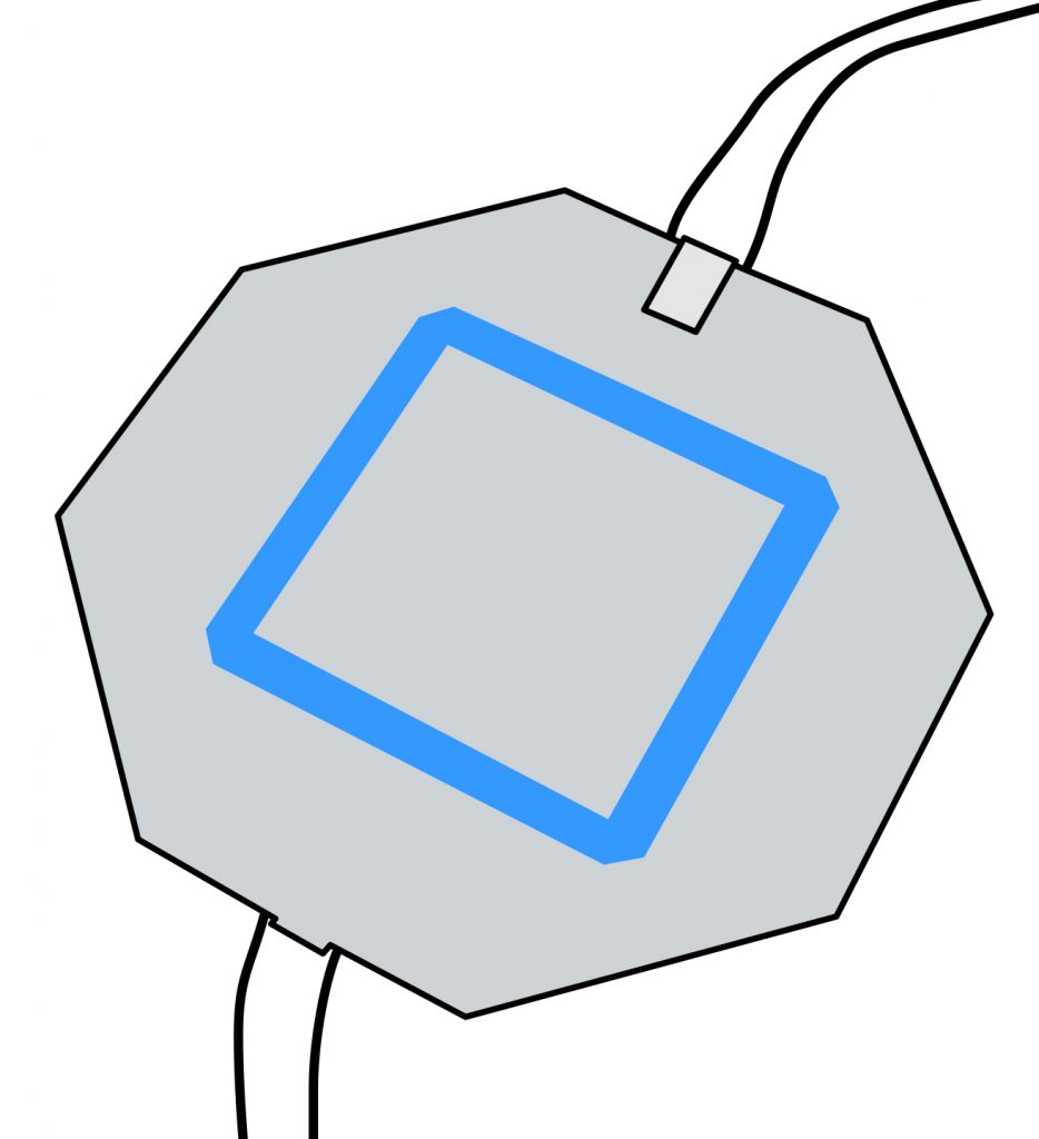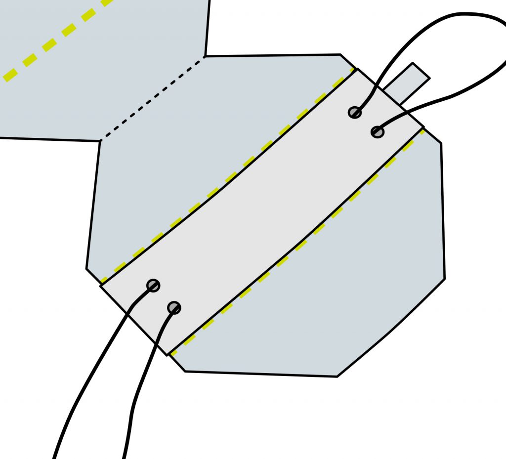 3. Klebe das Rechteck mit der Schnur auf die Innenseite des Surrbilds. Die gelben Linien helfen dir bei