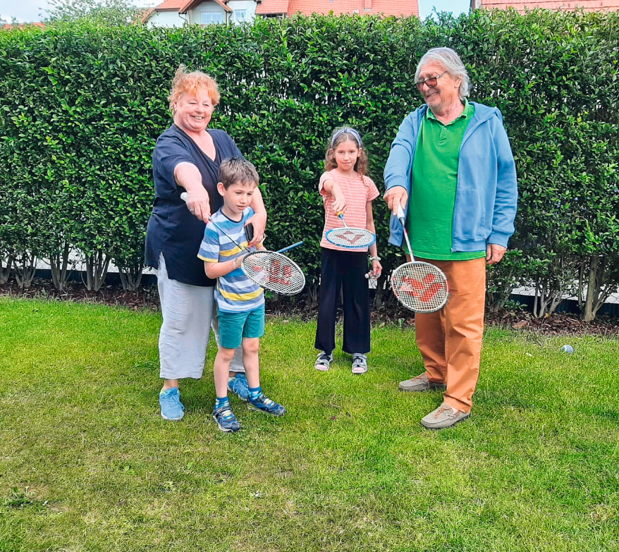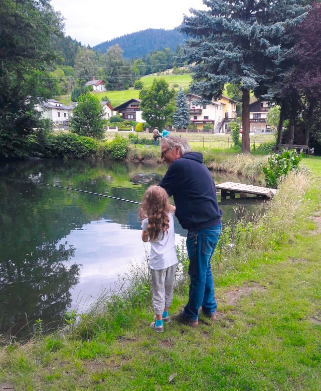 Wir heißen Zoe und Lenny und sind zehn und sechs Jahre alt. Wir verbringen viel Zeit mit unseren Großeltern Veronika und Herbert. Es ist nie langweilig mit den beiden, weil sie sich immer viel Zeit für uns nehmen. Sie spielen mit uns zum Beispiel Ball oder Federball, aber wir können mit ihnen auch einfach herumtollen und Spaß haben. Im Sommer fahren wir mit ihnen oft ins Schwimmbad oder an einen See. Da Oma und Opa die gleichen Wasserratten sind wie wir, verbringen wir viel Zeit im Wasser. Wir machen Spiele, wie Steine herauftauchen oder wir suchen Fische und schauen, wer von uns den größten Fisch sieht oder eine coole Unterwasserpflanze. Ein cooles Erlebnis war auch, als wir mit Oma und Opa zum Angeln an einem Teich waren. Opa hat die Köder befestigt und uns mit der Angel geholfen. Lenny und ich haben beide sogar einen Fisch gefangen, den wir dort im Lokal gleich gegessen haben. Oma und Opa waren mit uns auch schon in Kroatien auf Urlaub. Wir haben in einem Haus mit Pool gewohnt. Am Morgen waren wir mit Opa schon schwimmen und Mama und Papa konnten in Ruhe ausschlafen. Da wir uns während Corona nicht so oft gesehen haben, holen wir das jetzt nach und machen viele Ausflüge mit ihnen, zum Beispiel in den Wald, wo sie uns die Pflanzen und Tiere erklären.