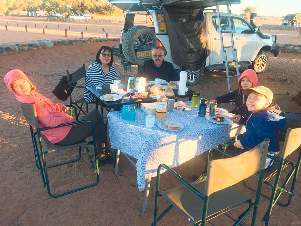 Wir heißen Sophie, 13, und Simon, 10 Jahre. Da unsere Großeltern Manuela und Herbert etwas weiter weg wohnen, sehen wir sie nicht so oft. Deshalb freuen wir uns schon auf die Ferien, denn dann verbringen wir immer eine ganze Woche bei ihnen. Wenn wir bei unseren Großeltern sind, vergeht die Zeit immer besonders schnell, da sie mit uns spielen und Ausflüge unternehmen. Wir machen auch öfter Familienurlaub mit Oma und Opa. Wir waren schon campen an einem See oder in einer Therme. Unser schönster Urlaub war, als die ganze Familie mit Oma und Opa in Namibia auf Urlaub war. Wir haben uns Autos mit Dachzelten gemietet, in denen wir übernachtet haben und sind zu einem Ressort an einem See gefahren. Danach haben wir eine Tour durch die Namib-Wüste gemacht und haben uns die „Little Five“ angeschaut. Wir haben auch Sandvipern und Chamäleons, Spinnen usw. gesehen. Bei der Safari haben wir auch Elefanten und Geparden beobachtet. Danach waren wir noch am Meer und haben eine Tour mit Kajaks zu den Robben gemacht. Das war ein tolles Erlebnis.