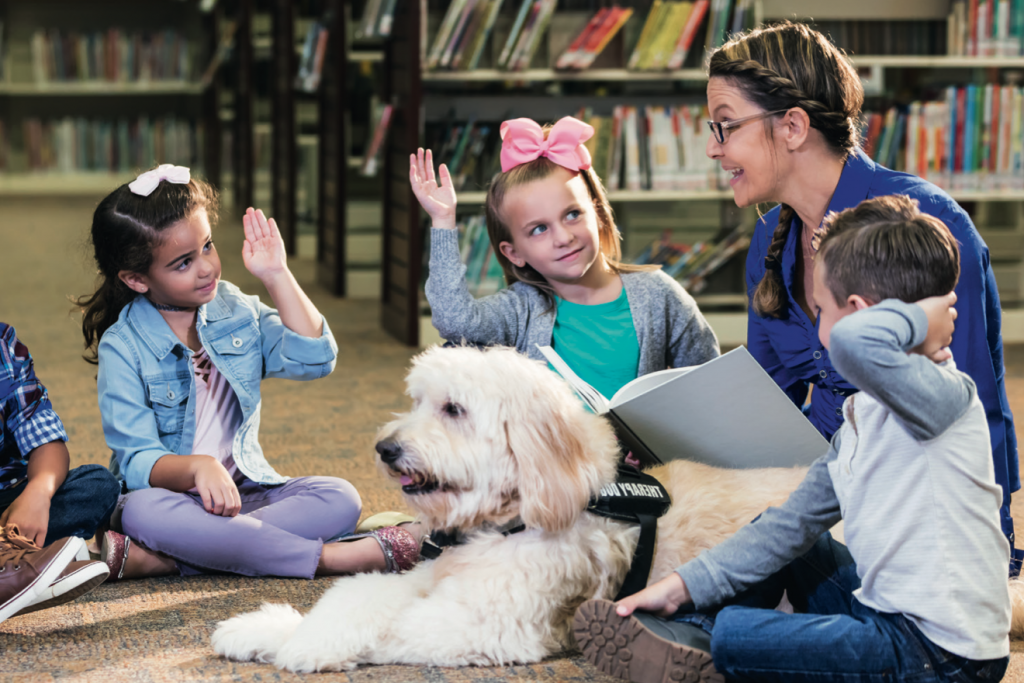 © i-Stock Images – SCHNUPPERSTUNDE. Im Mensch-Hund-Team kommen Besuchshunde auch oft in Schulklassen. Für die Schüler*innen ist das immer ein Highlight.