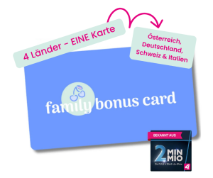 Machen Sie jeden Familienmoment noch wertvoller. Mit der Family Bonus Card sparen Sie bei zahlreichen Freizeit-, Urlaubs- und Gastronomiebetrieben in Österreich, Deutschland, der Schweiz und Italien – und genießen exklusive Rabatte für die ganze Familie!