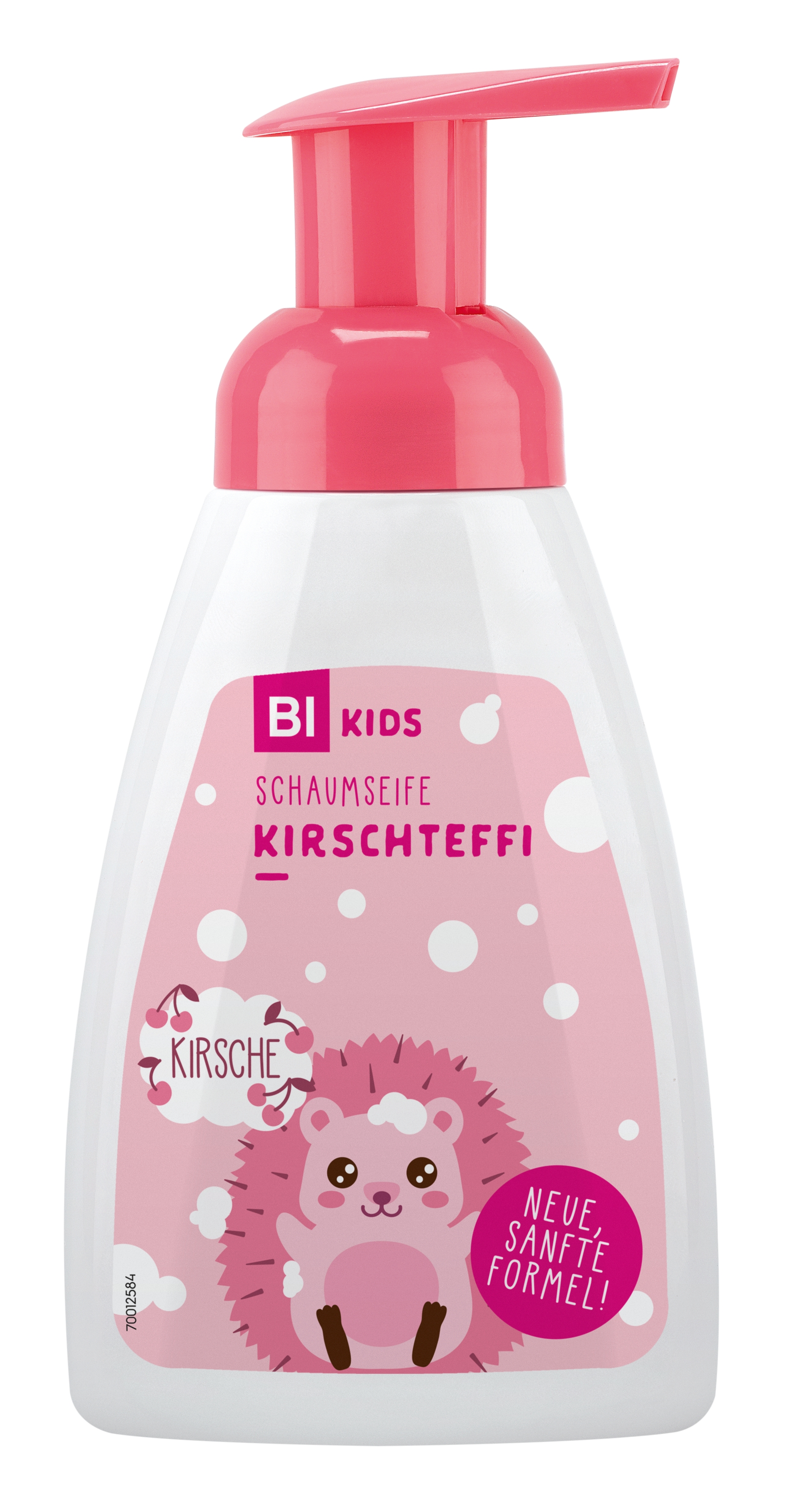 Eines steht fest: Schaumbad Schulbeerti wird von seinen Kolleg:innen mit offenen Armen in der Klassengemeinschaft aufgenommen. Hier treffen die verschiedensten frechen Früchtchen aufeinander. Sie sind mit allen Wassern gewaschen: In beerenstarker Qualität und schonend zu Haut und Geldbörse ziehen sie mit ihren lustigen Namen und frischen Düften Kinder sofort in ihren Bann. Wenn die BI KIDS Seife Kirschteffi oder BI KIDS Seife Apfelino auf dem Waschbeckenrand stehen, drückt sich garantiert kein Schulkind vor dem Händewaschen. Die luftigen Schaumseifen mit Aloe-Vera-Saft reinigen und pflegen Kinderhaut besonders behutsam und duften nach Kirsche oder Apfel-Birne.