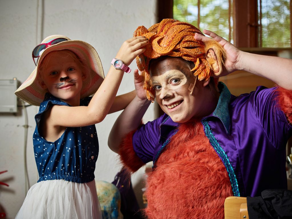 © Sebastian Reich – Viktoria zeigt Juniorreporterin Mavie, wie man die perfekte Panthernase schminkt.