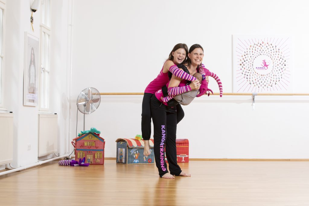 Eine innovative Idee hatte auch die Dreifachmutter Nicole Pascher aus Wien. Die Fitness-Personal-Trainerin und Tänzerin hatte ursprünglich geplant, sich auf pre- und postnatales Training zu spezialisieren: „Meine Tochter Pamina wollte als Baby aber nicht daneben liegen, während ich trainiert habe. Sie hat geweint. Als ich sie in eine Tragehilfe gegeben habe und mit ihr gemeinsam geübt habe, ist sie eingeschlafen.“ So wurde die Idee von Kangatraining geboren, dem weltweit ersten Workout von Müttern gemeinsam mit dem Baby in einer Tragehilfe.