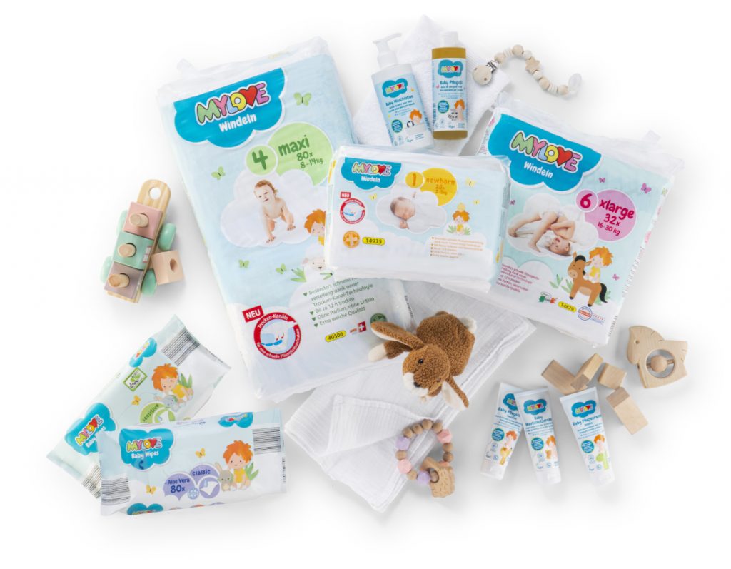 Von Windeln über Babypflegetücher bis hin zu Pflegecreme und -öl: Das große Sortiment unserer Exklusivmarke MYLOVE ist perfekt auf die Bedürfnisse der Kleinsten abgestimmt.