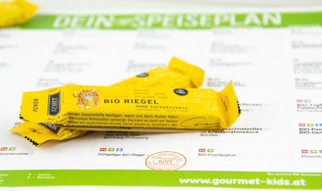 GOURMET Kids setzte am 18. September 2019 den Bio-Riegel "Königstiger" von NUSSYY® als Dessert auf den Speiseplan zahlreicher SchülerInnen und Kindergartenkinder.
