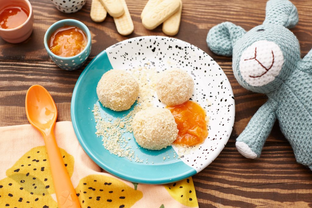 Je nach Entwicklungsstufe deines Kindes können die Mini Marillenknöderl vor dem Verzehr noch mit einer Gabel zerdrückt werden.