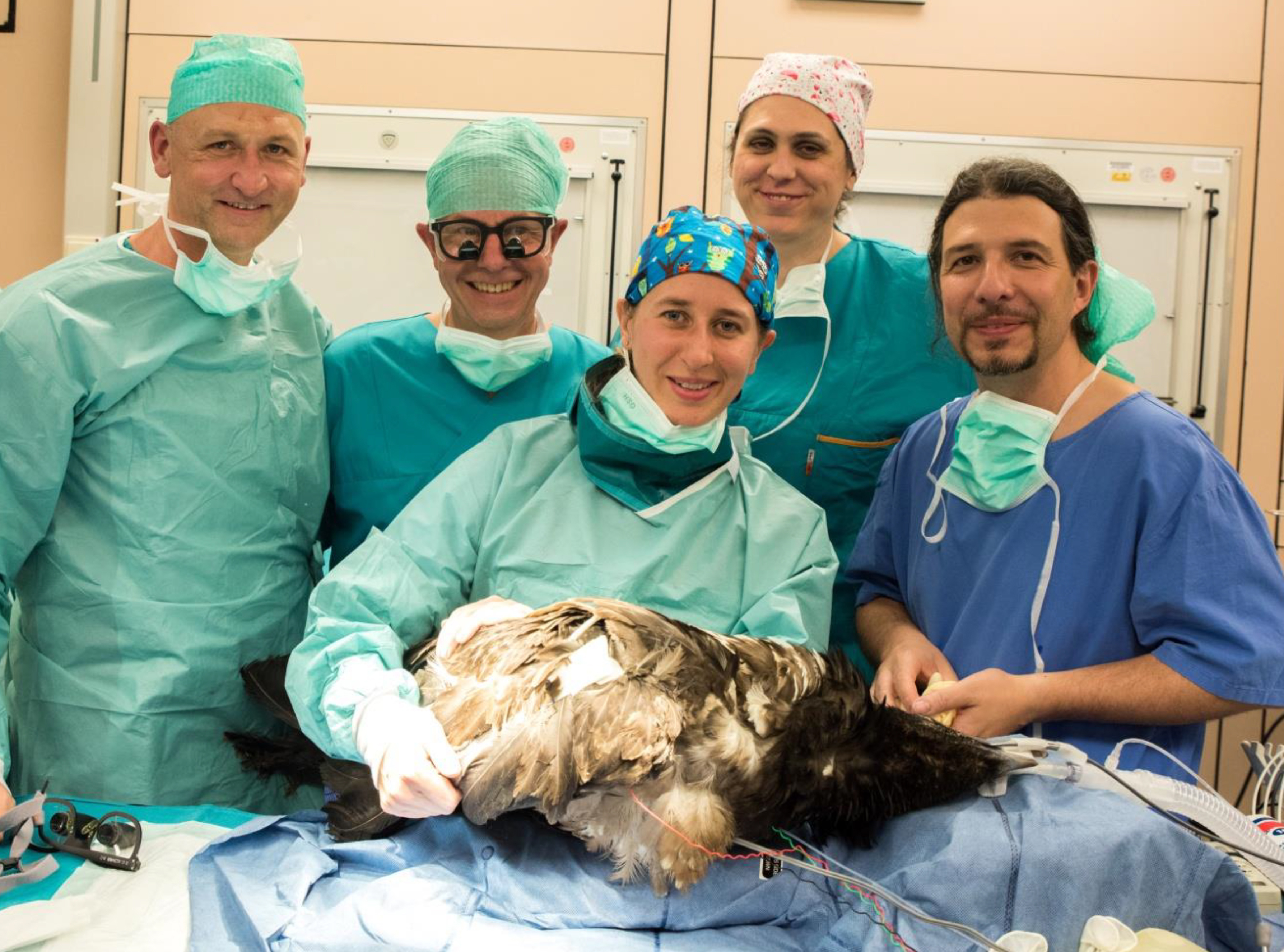 Aszmann betont: „Nach einer klinischen Visite in Haringsee war klar, dass der seltene Vogel nicht lange in der aktuellen Situation überleben würde. Wir konzipierten und fertigten ein eigenes Knochenimplantat an, welches bei der OP am Stumpf eingesetzt wird.“