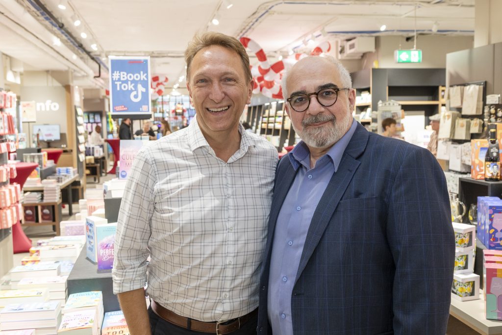 Gleich zum Auftakt durften sich Anwesende über ein besonderes Highlight freuen: Kabarettist Michael Niavarani war vor Ort und plauderte im Morawa-Podcast „Lesen ist…“ mit Ö3-Moderatorin Daniela Zeller über das Lesen. Mit gewohnten Charme und Witz sprach er über sein Leseverhalten auch in Bezug auf neue Theaterstücke, welche Genres er gerne liest und wann er ein Buch weglegt, wenn es ihm nicht gefällt.