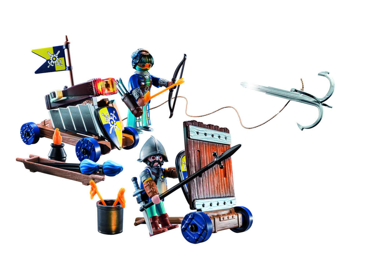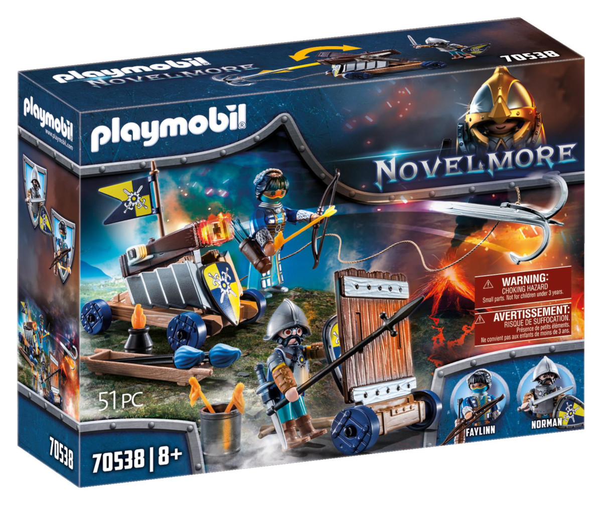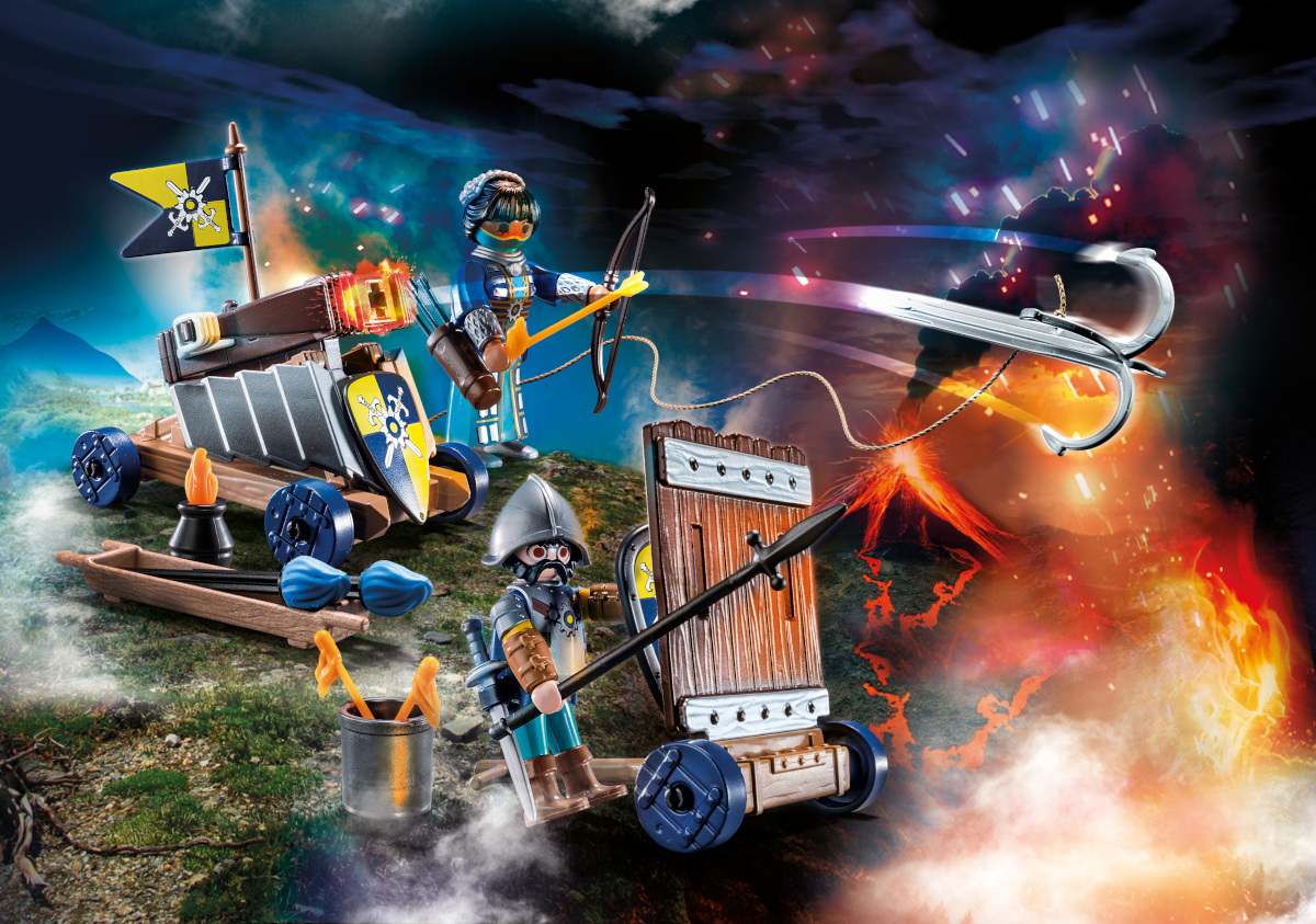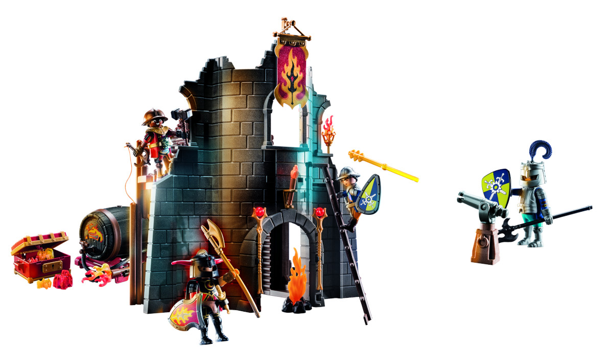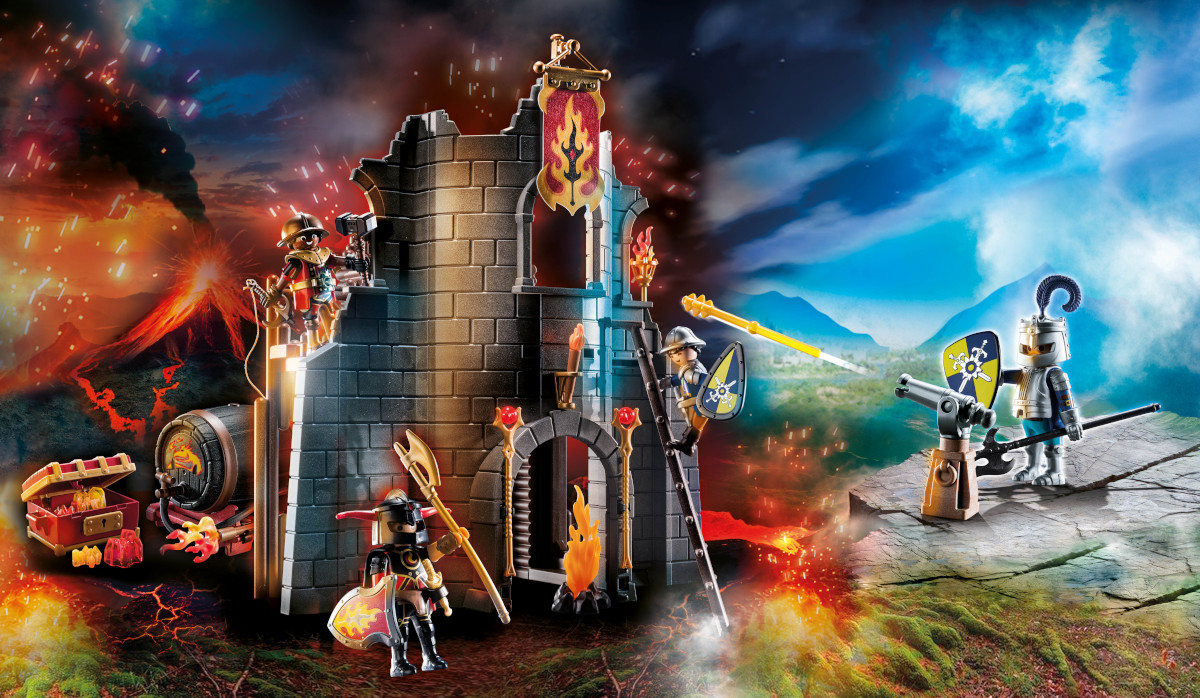 Die Ritter von Novelmore kämpfen mit den Burnham Raiders um die magische Rüstung Invincibus – die soll den Träger unbesiegbar machen. Für erweiterten, fantasievollen Spielspaß gibt es von PLAYMOBIL ab sofort den „Novelmore Angriffstrupp“ und die „Burnham Raiders Feuerruine“.