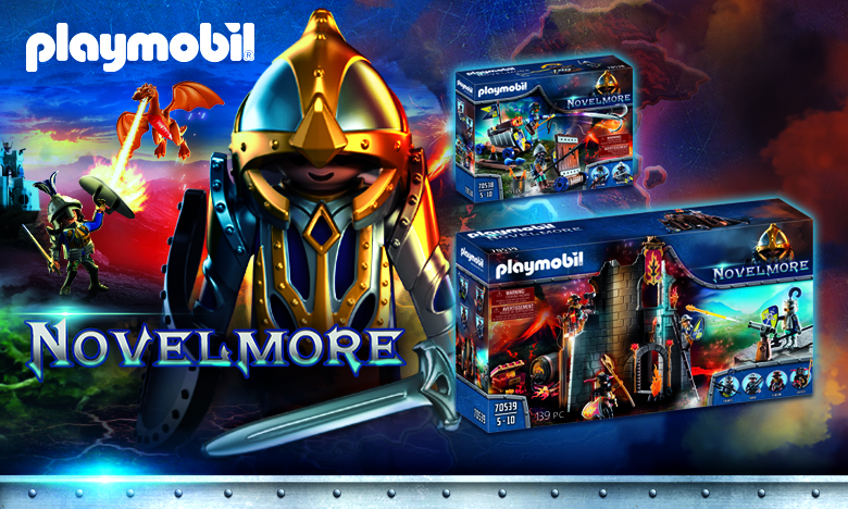 Die Ritter von Novelmore kämpfen mit den Burnham Raiders um die magische Rüstung Invincibus – die soll den Träger unbesiegbar machen. Für erweiterten, fantasievollen Spielspaß gibt es von PLAYMOBIL ab sofort den „Novelmore Angriffstrupp“ und die „Burnham Raiders Feuerruine“.
