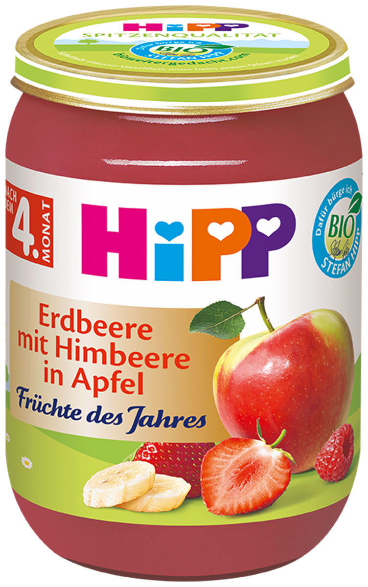 HiPP Erdbeere mit Himbeere in Apfel und HiPP Spaghetti Bolognese bekommen nun ein goldenes Label für die „Früchte des Jahres“ bzw. für das „Menü des Jahres“.