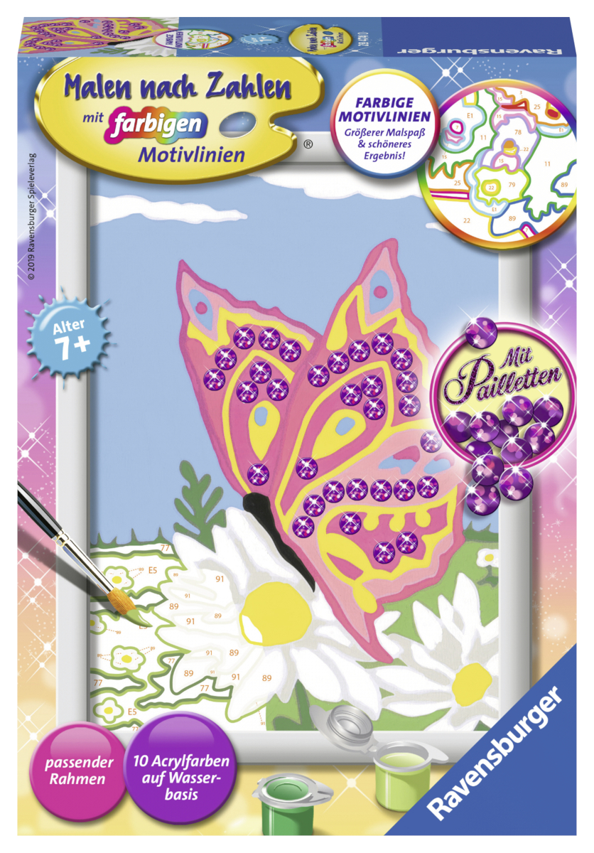 Toll für den kreativen Nachwuchs: Wir verlosen 2 Stück des neue „Malen nach Zahlen“-Sets „Schmetterling mit Pailletten“ von Ravensburger.