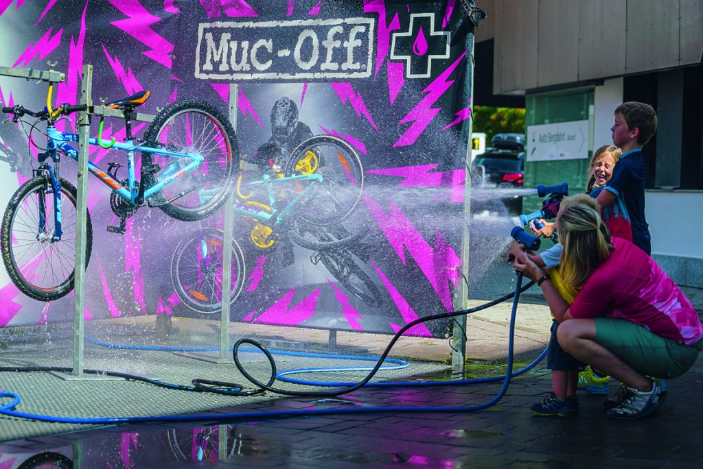 Der Bike Wash Corner ist der Anziehungspunkt für Kinder.