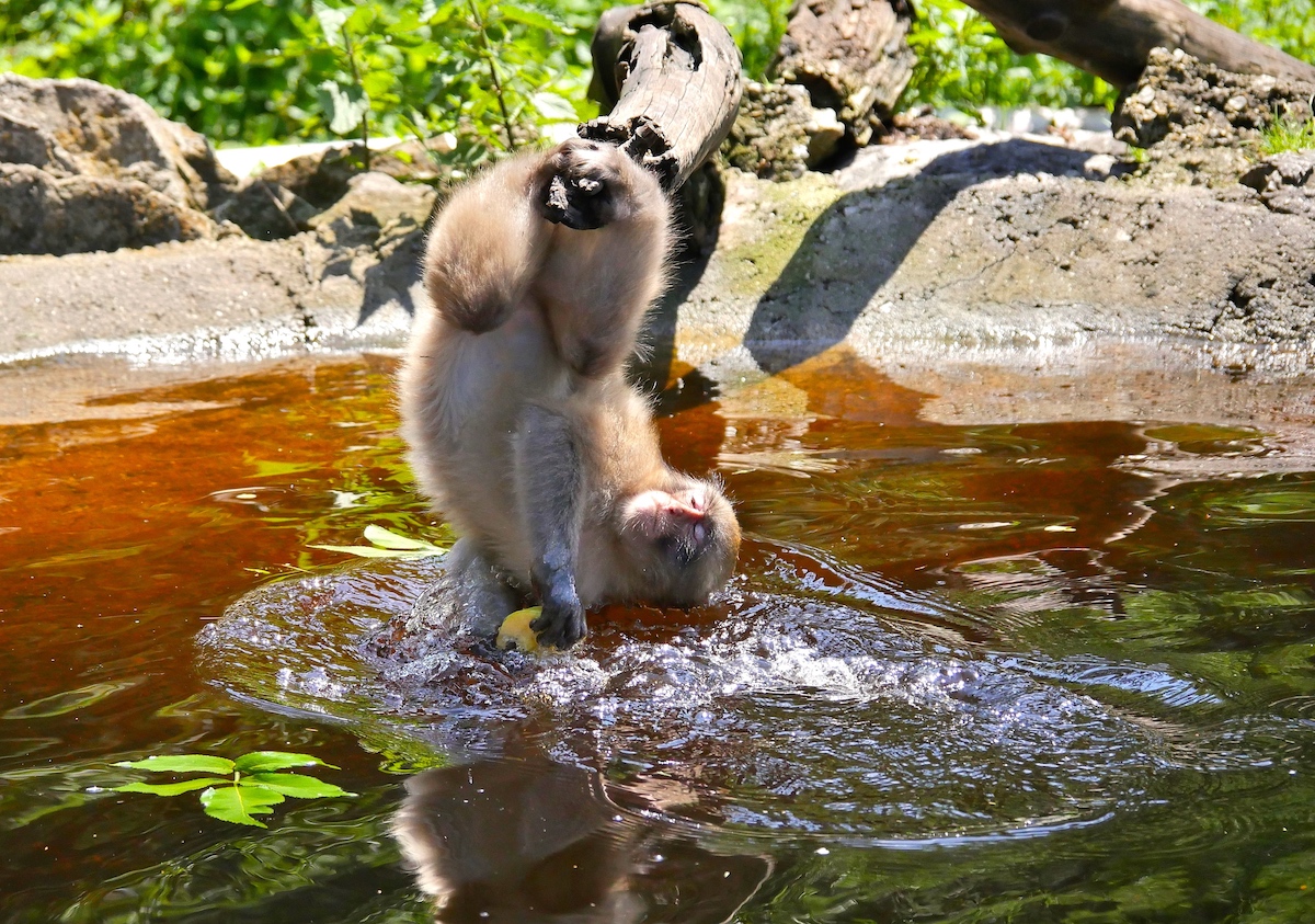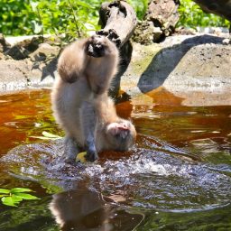 Mit etwas Glück könnt ihr Babies sehen oder die Affen beim Schwimmen beobachten.