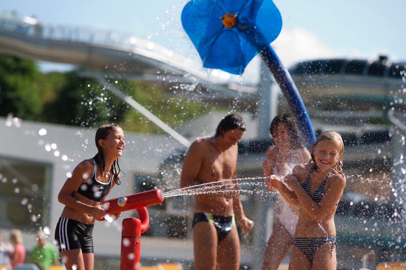 Zwischen Thermalbad und Hotel befindet sich der 6.700 m2 große Außenbereich. Hier kann nach Herzenslust geplanscht, gespielt und natürlich auch geschwommen werden!