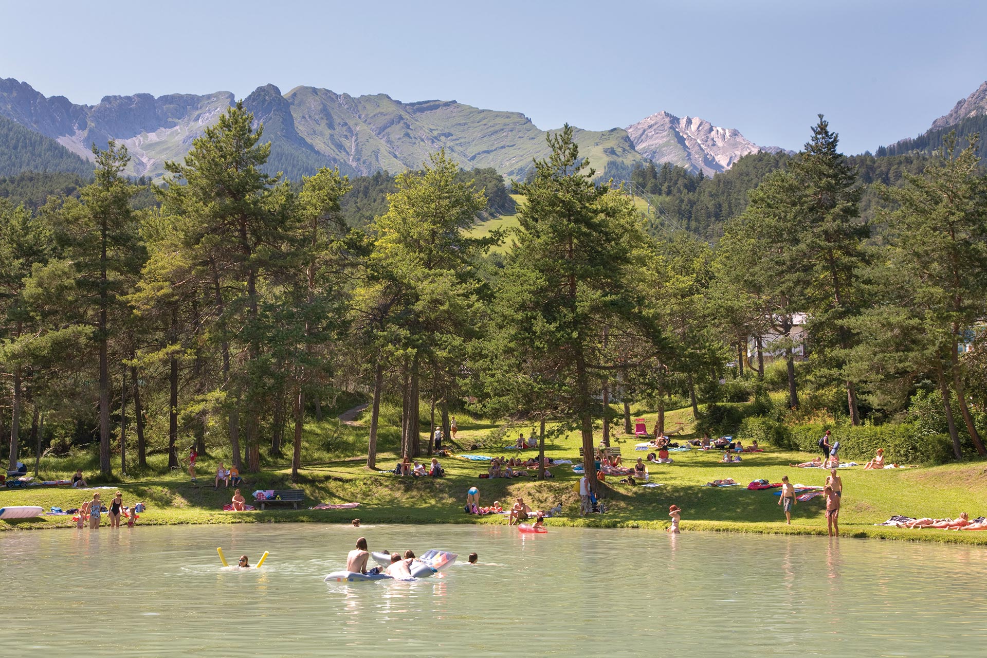 Der kleine Badesee in Hoch-Imst ist bei Familien und Einheimischen sehr beliebt. Ruhig und idyllisch liegt er zwischen Wiesen und Bäumen, die einem den nötigen Schatten spenden. Er ist ein Paradies inmitten der Natur.