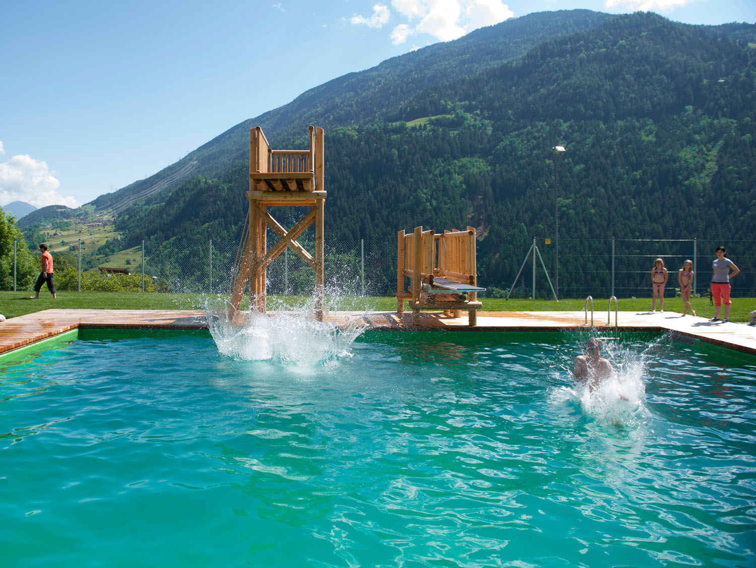 Der chlorfreie Naturteich lädt zum Schwimmen und Planschen ein. Für die Kleinen gibt es einen eigenen Kinderbadeteich der 1,35 Meter tief ist. Dazu können Kleinkinder im Babybecken ihre ersten Erfahrungen mit dem Wasser machen.