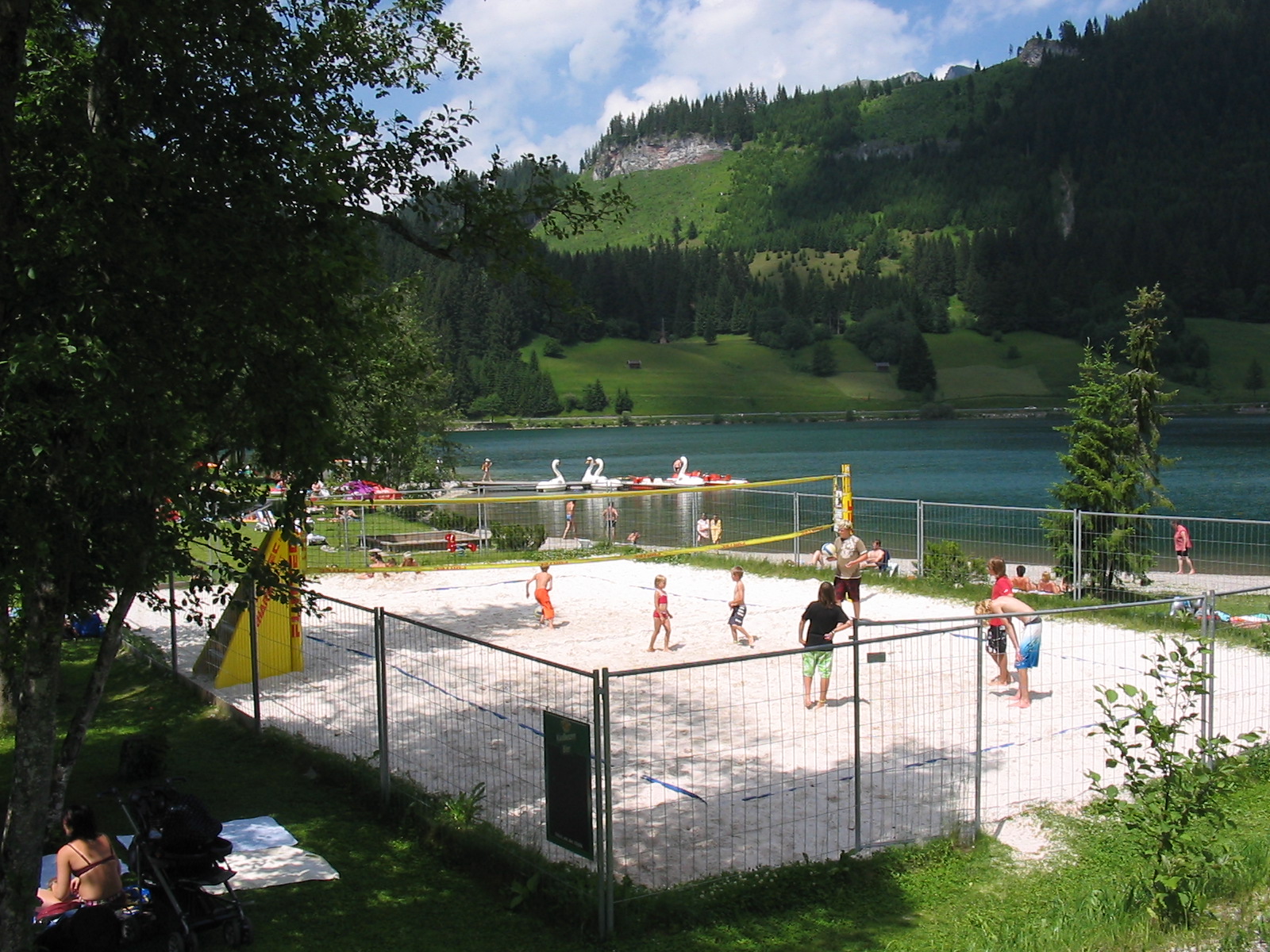 Der Badesee Haldensee liegt in einer atemberaubenden Naturkulisse. Um den See befinden sich tolle Rad- und Wanderwege, die einen tollen Familien-Sommertagsausflug ermöglichen.