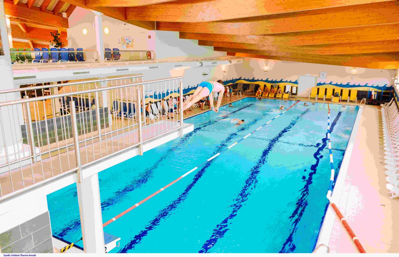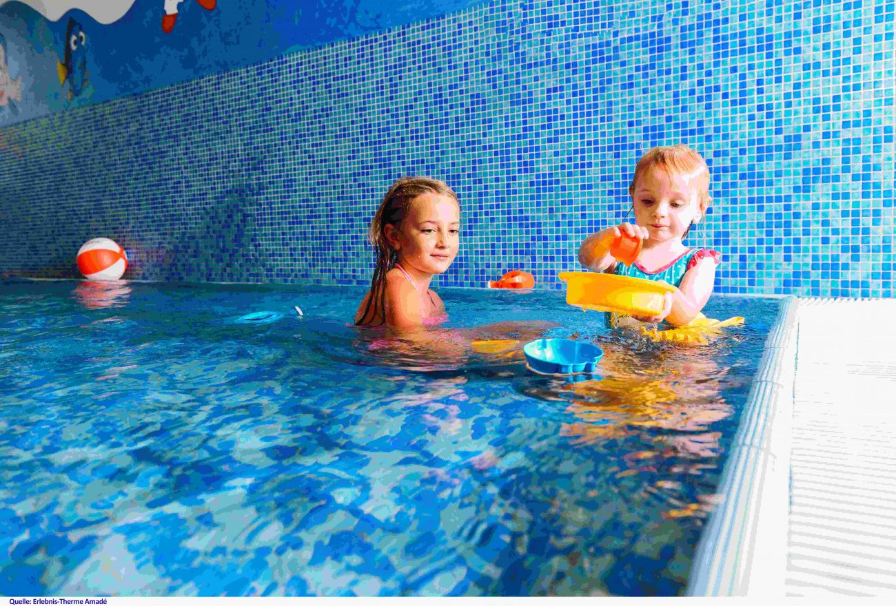 Die abwechslungsreiche Bade- und Saunalandschaft der Erlebnis-Therme Amadé sorgt für pures Sole-Badevergnügen mitten in der wunderschönen Berglandschaft des Pongau. Freizeit-Spaß für die ganze Familie garantiert das Erlebnisbad mit spannenden Rutschen, der Wasserkletterwand, uvm.
