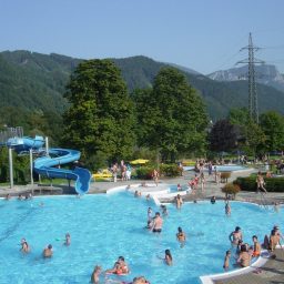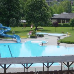 Die große Liegewiese wartet nur darauf dass man sich seine eigene kleine Oase aufbaut bevor man zum ersten mal ins kühle Nass abtaucht. Das Erlebnisbadbecken bildet mit zwei langen Schwimmbahnen sowie einem Erlebnisbereich inklusive einer Wasserrutsche und Wildwasserkanal, der Kern allen Geschehens. Für die noch etwas kleineren Kinder gibt es zudem zwei Kinderbecken indem sie sich so richtig austoben und planschen können.