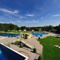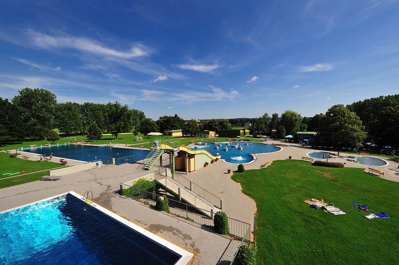 Zentrales Element im Jennersdorfer Freibad ist das rundlich geformte Erlebnisbecken mit Breitbandrutsche und Annehmlichkeiten wie Massagedüsen und Luftsprudelgeysire. Für die Kleinen stehen zwei miteinander verbundene runde Wasserbecken mit Rampenrutsche und Spielbach, sowie ein Kinderspielplatz zum Spielen und Austoben zur Verfügung.