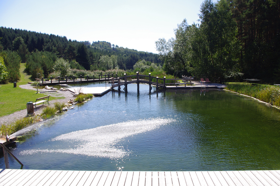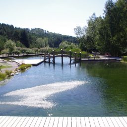 Inmitten der Bernsteiner Naturlandschaft findet sich das rund 1.500 m² große Naturschwimmbad mit Schwimmer-, Nichtschwimmer- und Kleinkinderbereich.