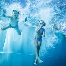Die Mutigen können auf dem Sprungbrett ihre Kunststücke vorführen oder den „Flying Fox“ ausprobieren. Die Kleinen dürfen im Kinderbecken auf der Elefanten- und Schlangenrutsche hinunter sausen und an Land lädt der Abenteuerspielplatz mit Piratenschiff ein seiner Fantasie freien Lauf zu lassen oder etwas auf der Vogelnestschaukel entspannen.