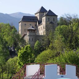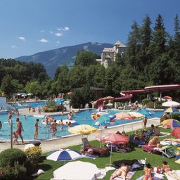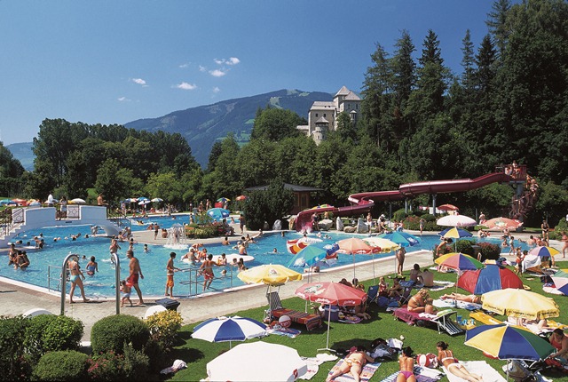 Badespaß für Jung und Alt mit Blick auf das Schloss Bruck.