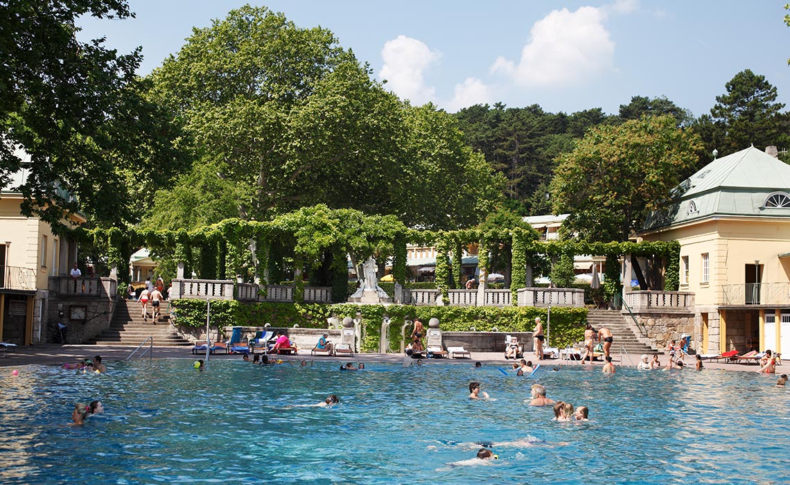 Die in einer Parklandschaft liegenden Becken werden von der Vöslauer Heil- und Mineralwasser-Quelle gespeist.