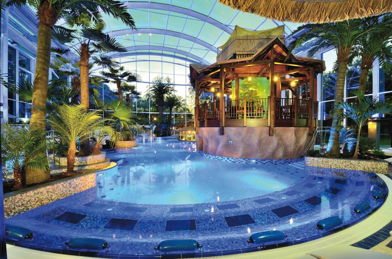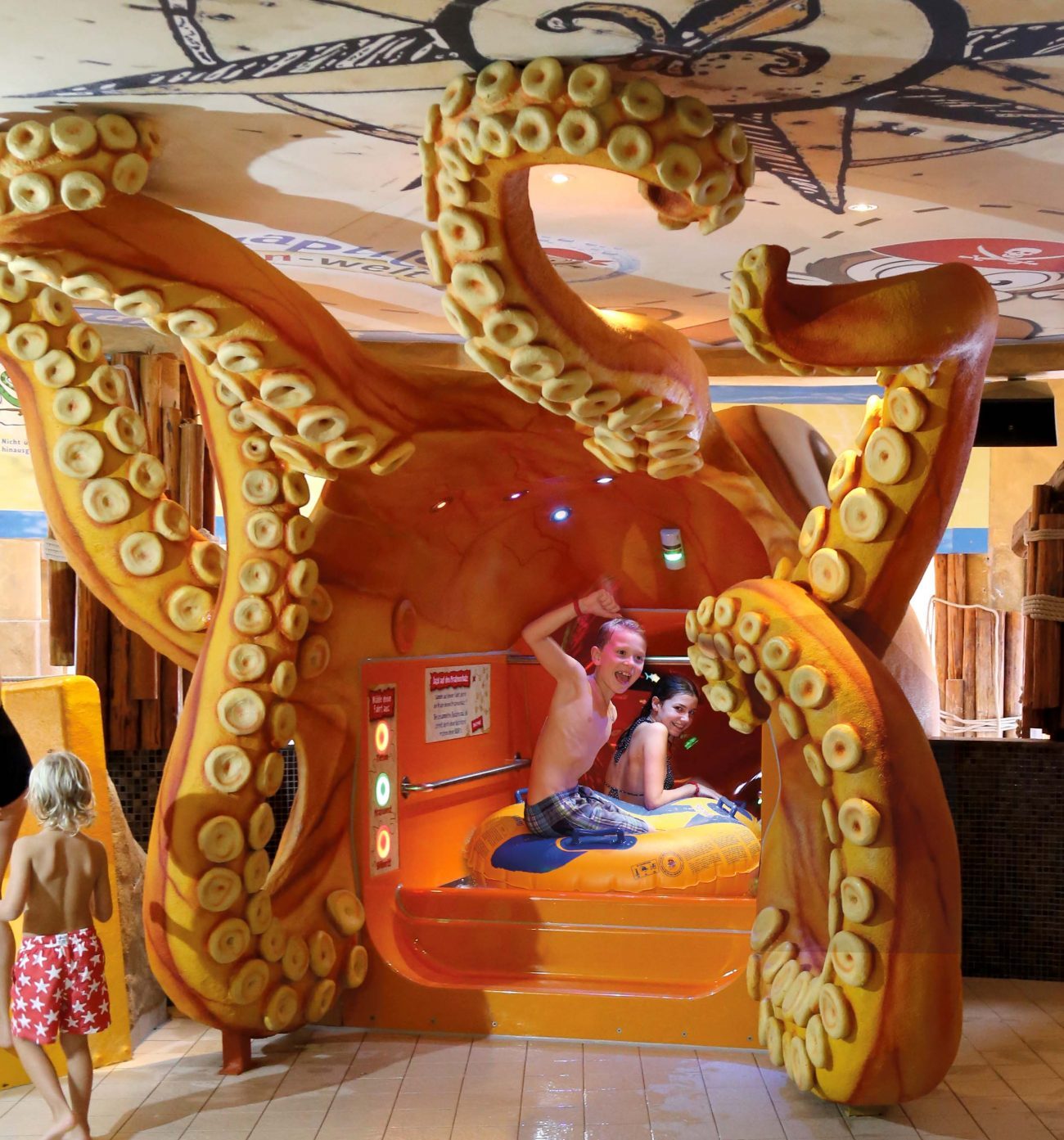 Action und Spaß für Groß und Klein bietet die Piratenwelt Aquapulco. Südseefeeling und Relax-Bereiche finden sich unter Palmen.