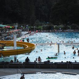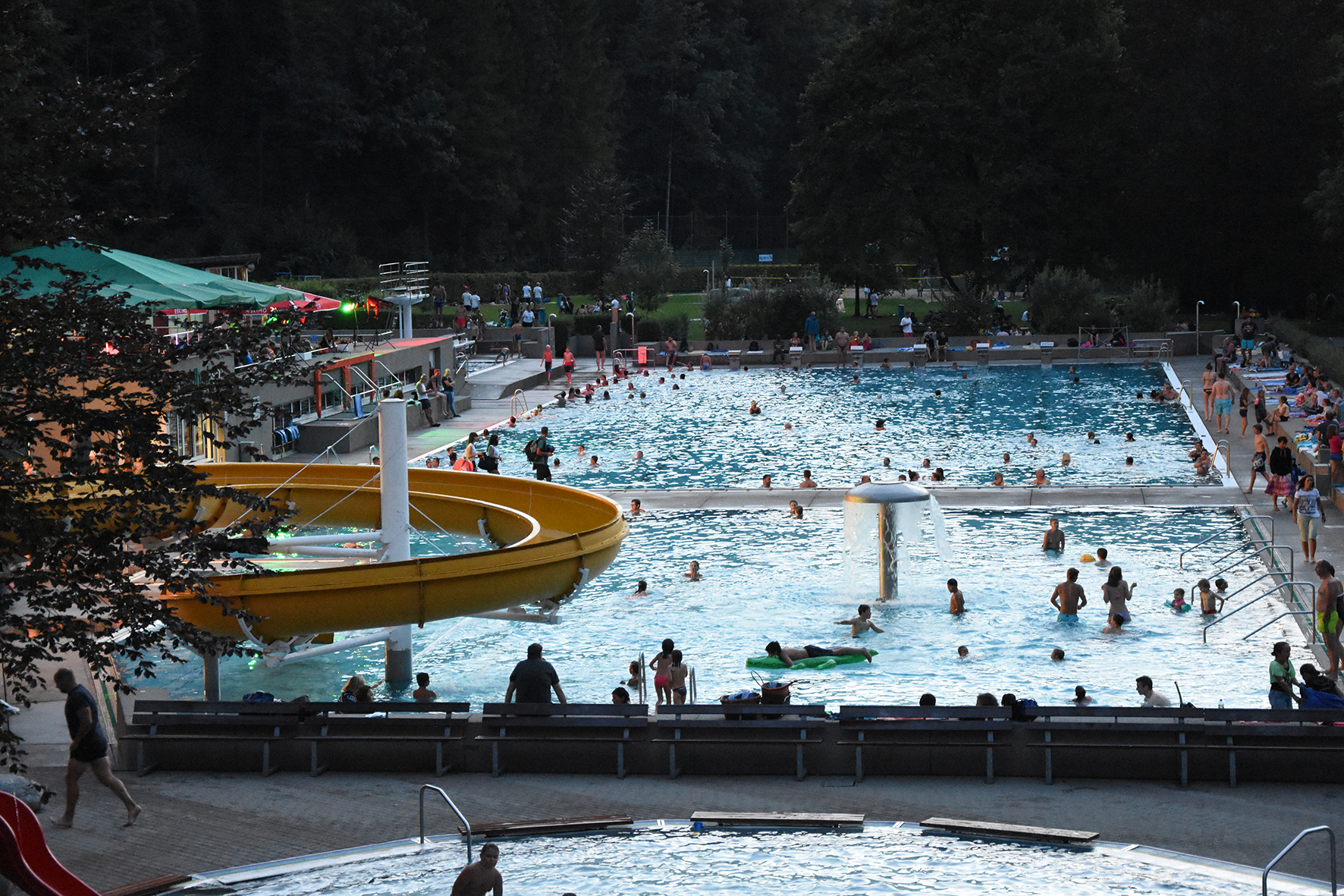 Der höher gelegene Kioskbereich ist ein willkommener Erholungsbereich, bei dem die Kräfte gestärkt werden können. Ganz speziell für das Waldbad ist das Vollmondscheinschwimmen, denn auch einmal nachts im Schwimmbad seinen Spaß zu haben, ist etwas ganz Besonderes.