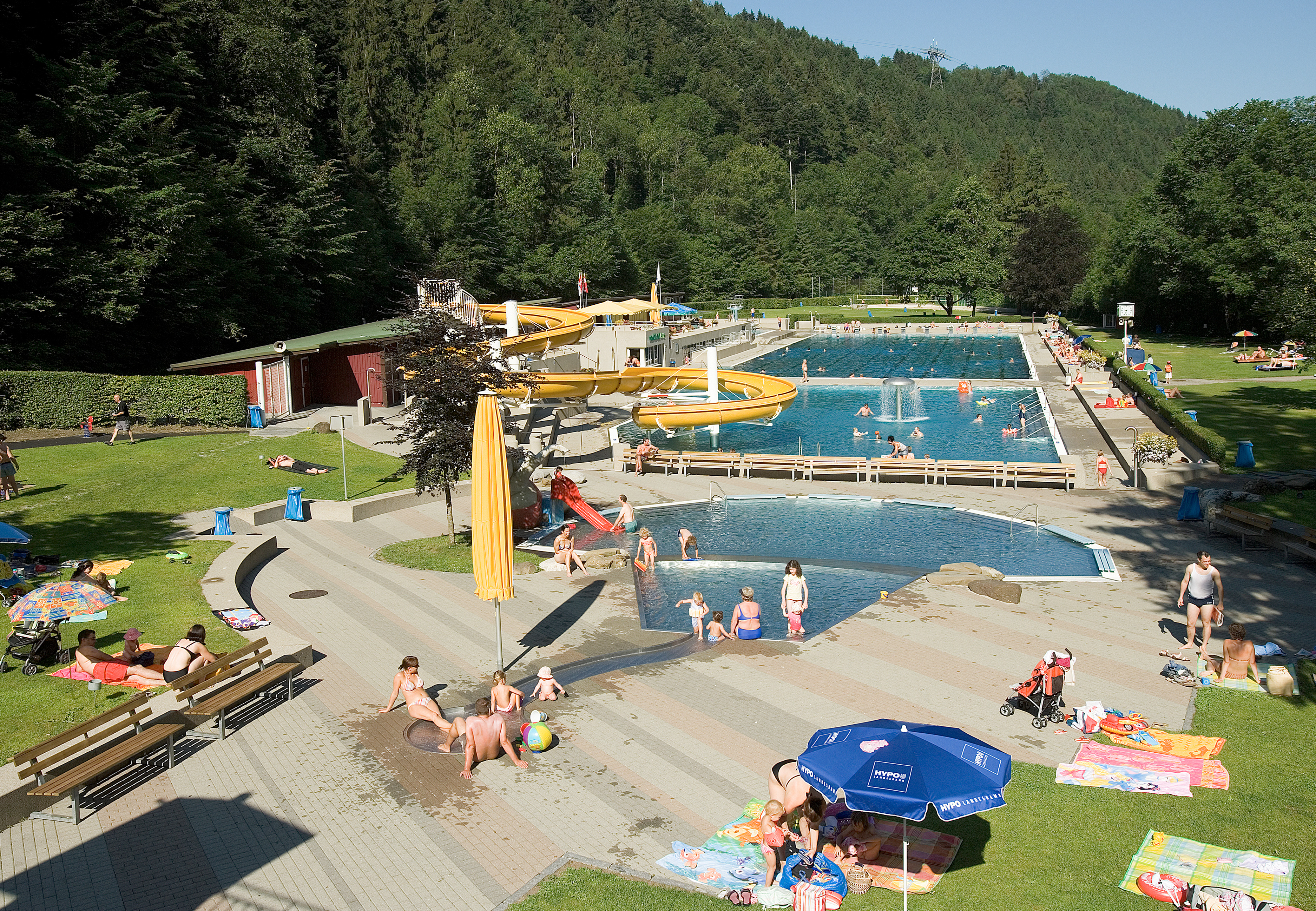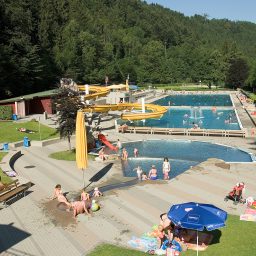 Das größte Becken ist das Sporbecken mit Schwimmbahnen und Sprungsockeln. Das mittlere Schwimmbecken lädt zu viel Spaß und Abenteuer ein. Das Highlight des Bades ist die gelbe Wasserrutsche. Das Kinderbecken am Anfang des Bades ist eine kleine Oase für unsere Jüngste.