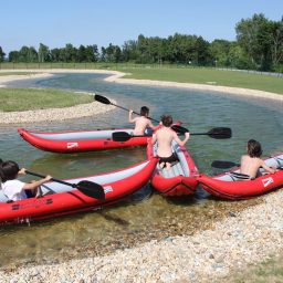 Ein weiteres Highlight der Anlage ist der 150 Meter lange Wasserlauf auf dem mit Kanus gefahren werden kann.