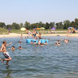Auf dem 6 ha große Spiel- und Badegelände findet sich alles, was bewegungshungrige Kinder, aber auch ruhesuchende Erwachsene gleichermaßen suchen – viel Platz und Angebote für ihre Bedürfnisse. Der Abenteuerspielplatz mit Kletterturm, Karussell, Schaukel und Sandspielplatz, ein Spielbach mit einem ägyptischen Schöpfrad, ein Leuchtturm und viele weitere Spielgeräte und –plätze lassen alle Kinderherzen höher schlagen.