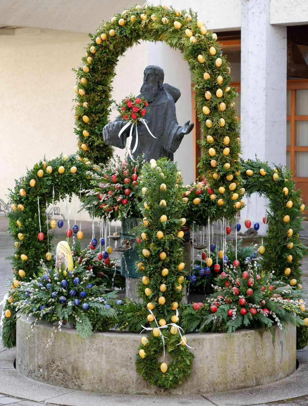 Frauen und Kinder verwandeln die kostbaren Wasserquellen in den Ortszentren für die Zeit um Ostern zu einem bunten Kunstwerk aus Tannengrün und bunten Ostereiern. Das Schmücken des Dorfbrunnens war ursprünglich Teil des Frühjahrsputzes, bei dem der Brunnen des Orts gründlich vom Schmutz des Winters gereinigt und anschließend entsprechend herausgeputzt wurde.