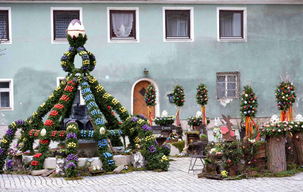 Der Brauch reicht rund hundert Jahre zurück: Damals wurde in Aufseß in Nordbayern nach mündlicher Überlieferung der erste Osterbrunnen geschmückt. Die alte, ursprünglich aus dem Fränkischen stammende Tradition zum Osterfest den Brunnen mit bemalten Eiern, Kränzen, Girlanden und Blumen zu schmücken, ist heute in vielen Orten in der Oberpfalz und Niederbayern verbreitet. Die Kreisstadt Sulzbach-Rosenberg begeistert ihre Besucher auch regelmäßig sogar mit dem größten Osterbrunnen der Welt. Verziert mit rund 16.500 Eiern fand er schon im Jahr 2005 Eingang ins Guinness-Buch der Rekorde.