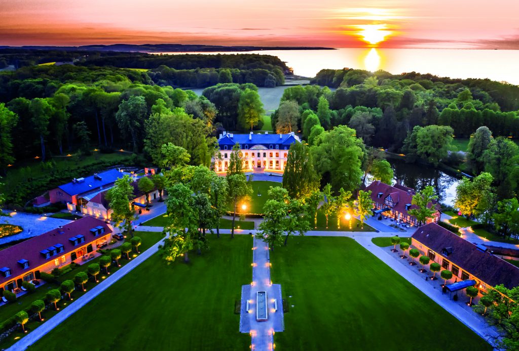 Die Suiten und Zimmer verteilen sich auf acht luxuriös renovierte historische Wirtschaftsgebäude und die oberen Stockwerke des Schlosses. In dem über 400 Jahre alten Prachtbau schlägt auch das Herz des Resorts: Hier genießt man im Gourmetrestaurant Courtier, das erst vergangenes Jahr mit dem zweiten Michelin-Stern ausgezeichnet wurde, unter Chef Christian Scharrer feinste Kulinarik. Abgerundet wird das Angebot durch das Bootshaus inmitten der Dünen direkt am eigenen Strand, das idyllische Kavaliershaus mit Blick auf den Schlossteich und das Pop-Up Restaurant Schlossküche.
