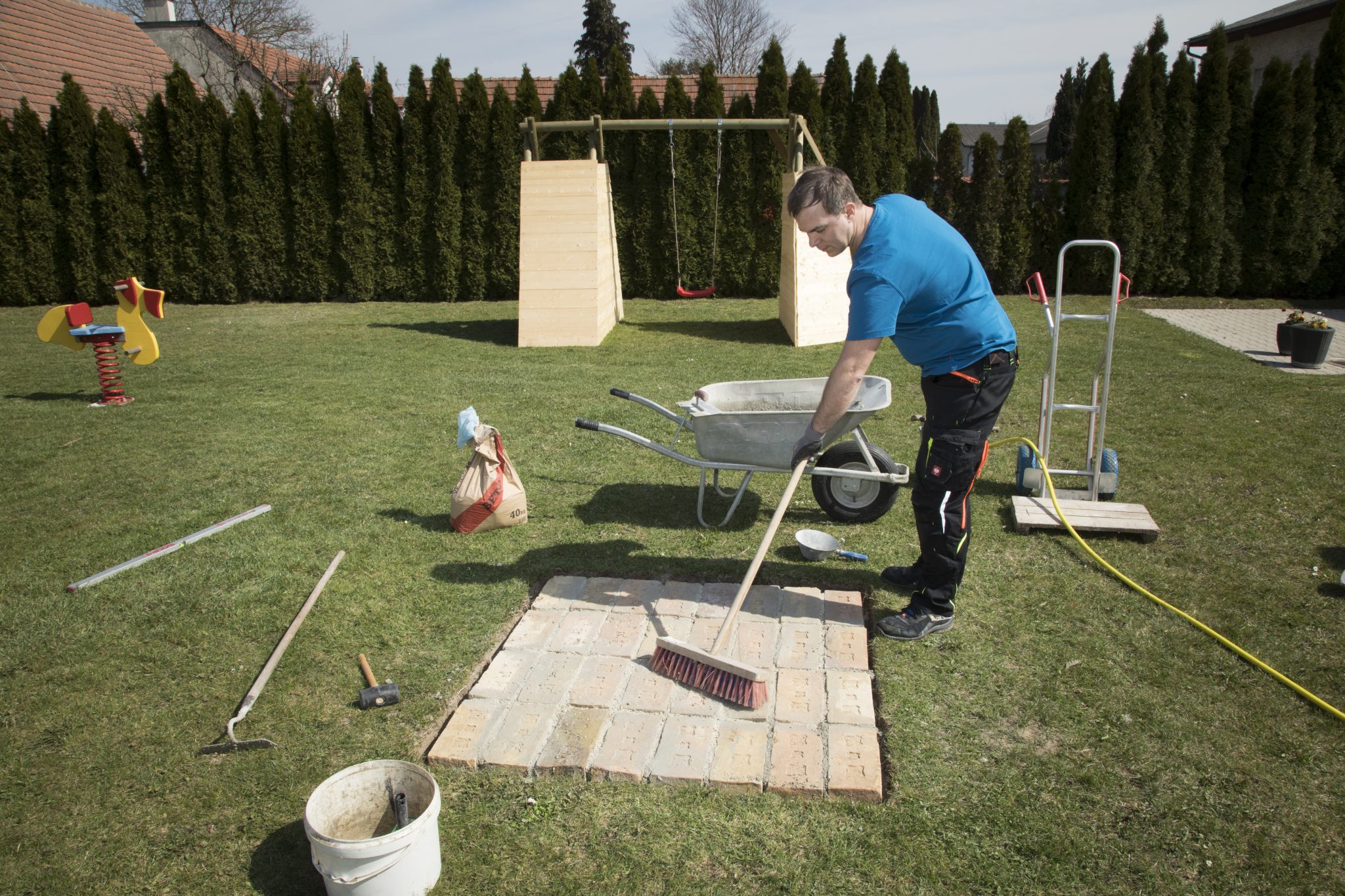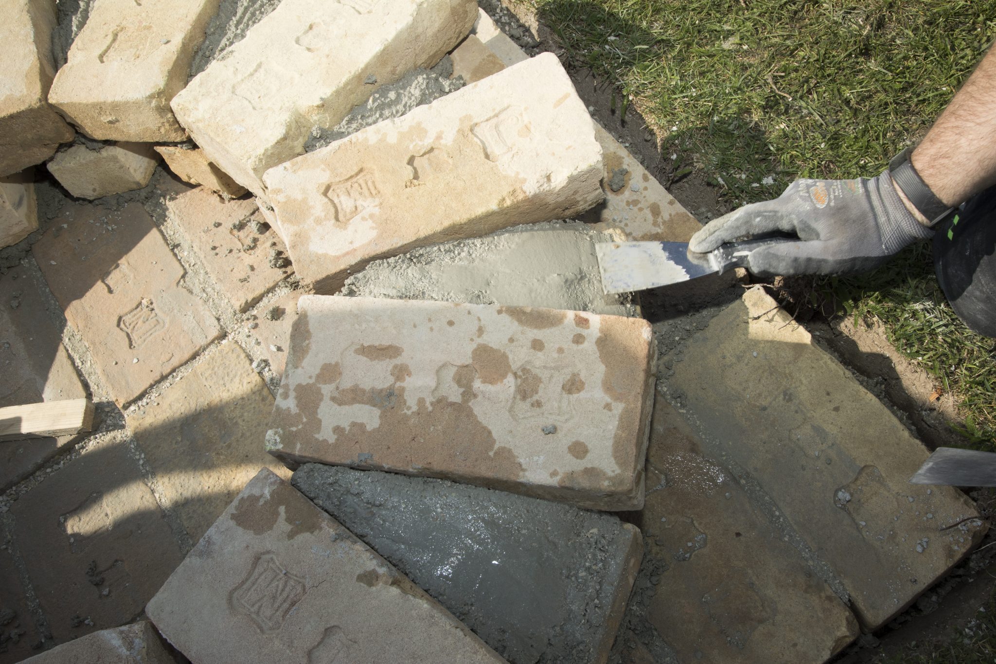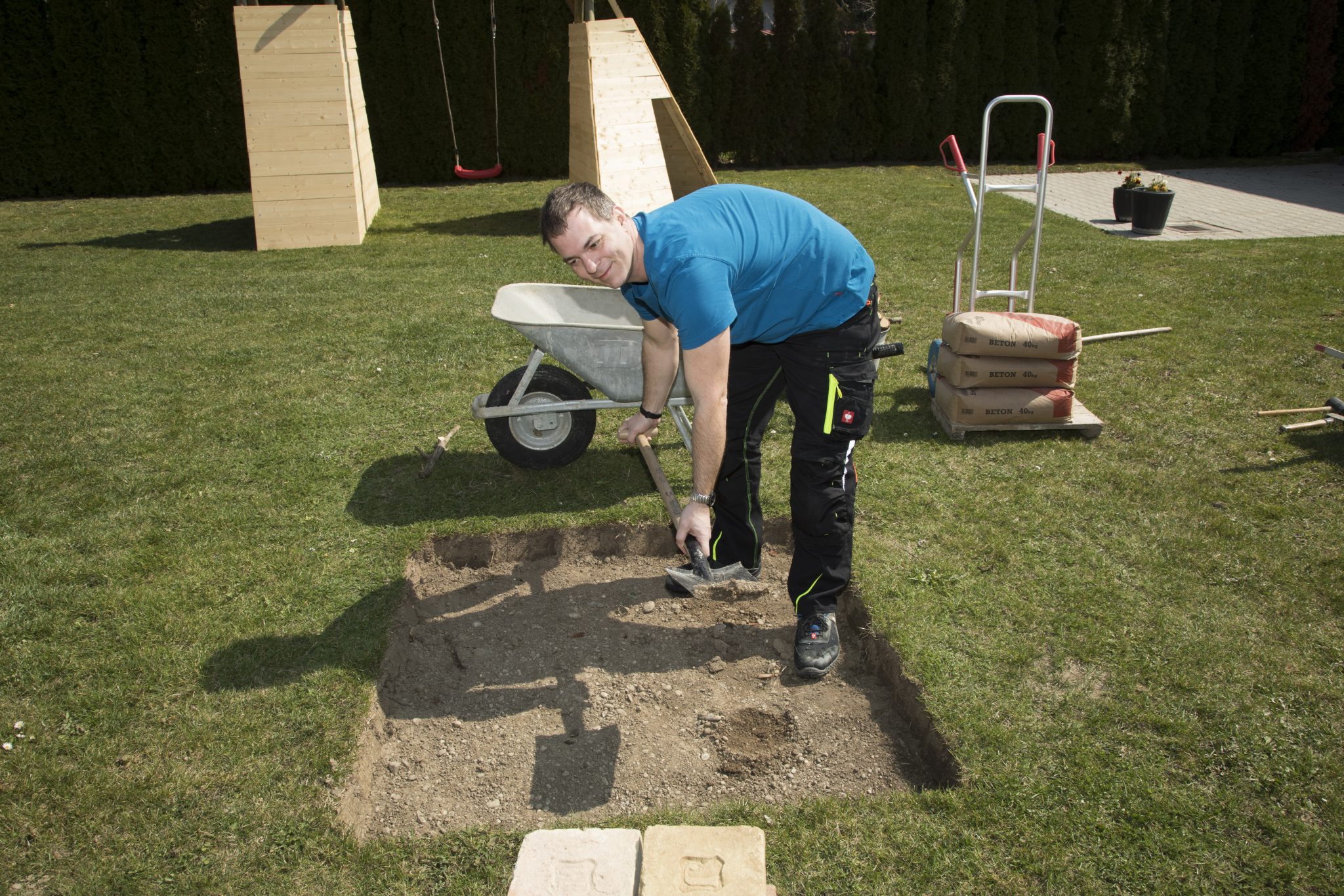 Diesmal bastelt Stefan Reschenauer etwas, das Erwachsenen wie Kindern im Sommer gleich viel Freude bereitet. Besondere handwerkliche Kenntnisse sind nicht nötig (allerdings sollten die Ärmel recht kräftig sein), nur etwas Planung und Fantasie. Das wichtigste sind die Ziegel, am besten Mauerziegel. Die gibt es im Baumarkt um rund 50 Cent pro Stück. „Im Internet werden auch viele gebrauchte Ziegel angeboten, die man vielleicht selbst aus einem alten Bauwerk rausklopfen muss und die dann gratis zu haben sind“, weiß Stefan. Er hat Ziegel ergattert, die vor vielen Jahrzehnten im Ziegelofen eines Nachbardorfes gebrannt worden waren und sogar einen Stempel des Herstellers tragen. Die fünf 40-Kilo-Säcke Fertigbeton, wo nur noch Wasser zuzugeben ist, schlugen mit nicht einmal 15 Euro zu Buche.