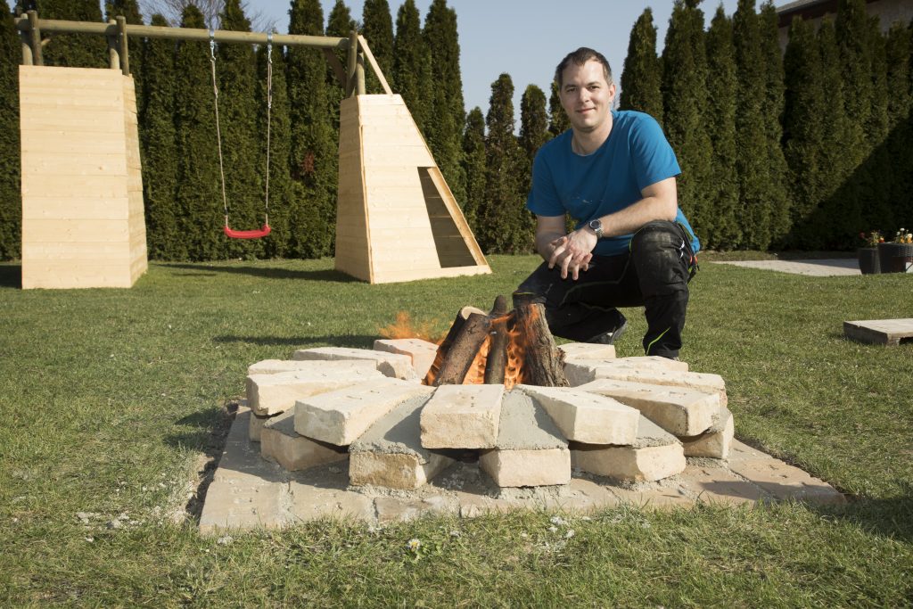 Eine selbst entworfene lauschige Feuerstelle im eigenen Garten ist in einem halben Tag gebaut und kostet nur wenige Euro. Die Kinder lieben es, am offenen Feuer Würstel, Maiskolben oder Marshmallows zu grillen.