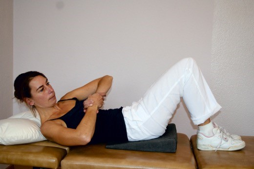 Diese Übung fördert die Rotationsmobilisation der Wirbelsäule und unterstützt die Flankenatmung.